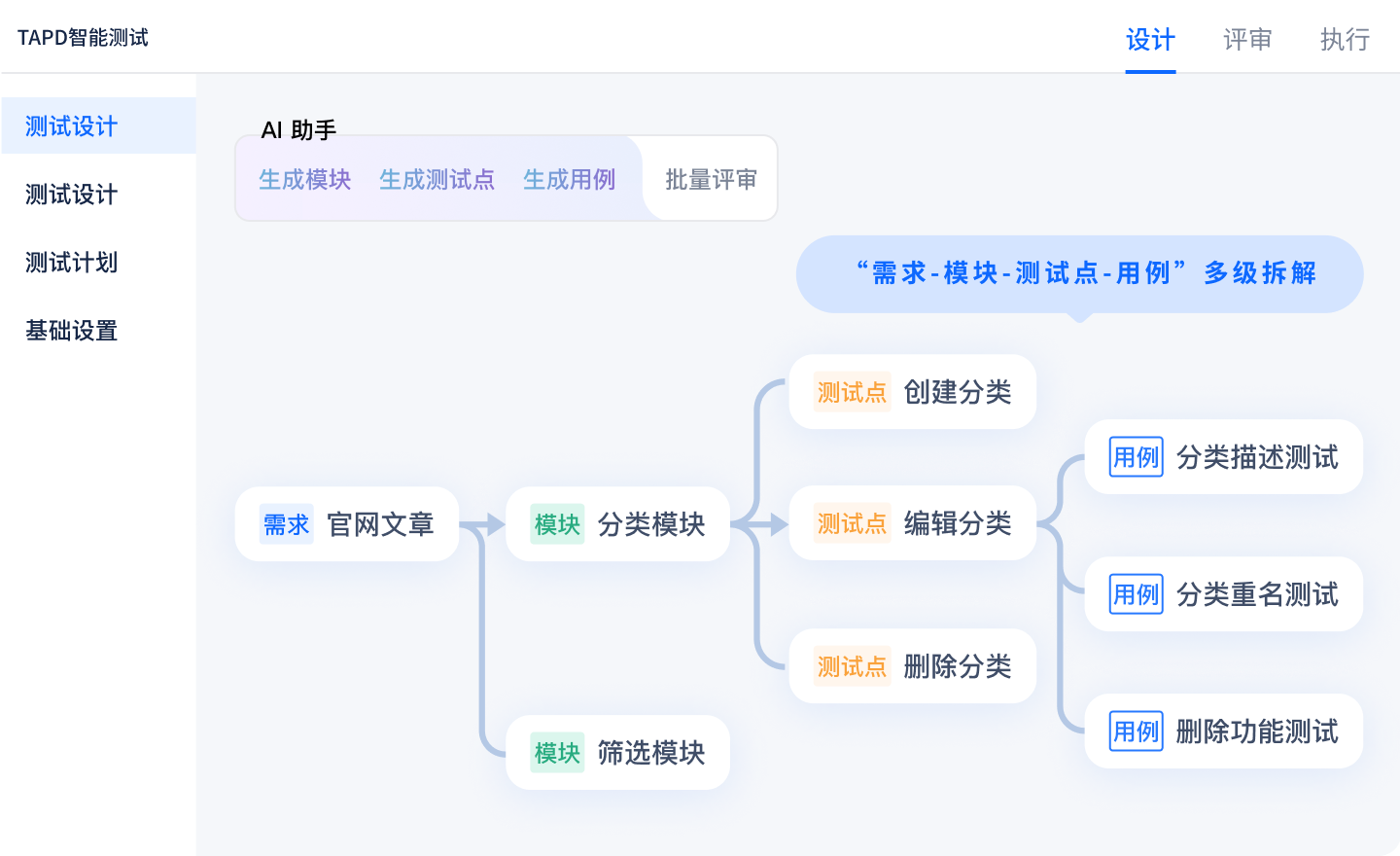 通过「需求-模块-测试点-用例」的多级拆解,实现深度思考