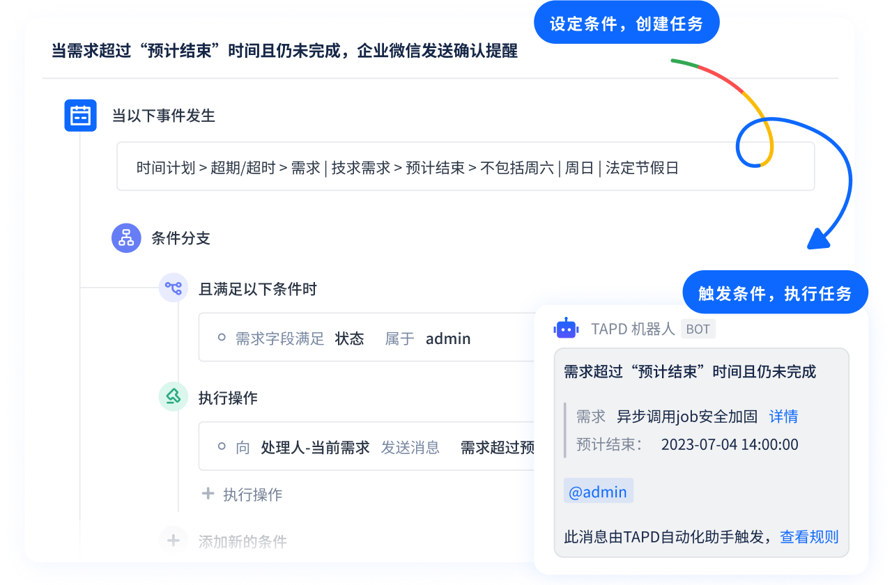 提供开放灵活的规则指令,用「触发条件+执行动作」的方式进行编排和执行,帮助用户处理繁琐的工作流程,提升协作效率。