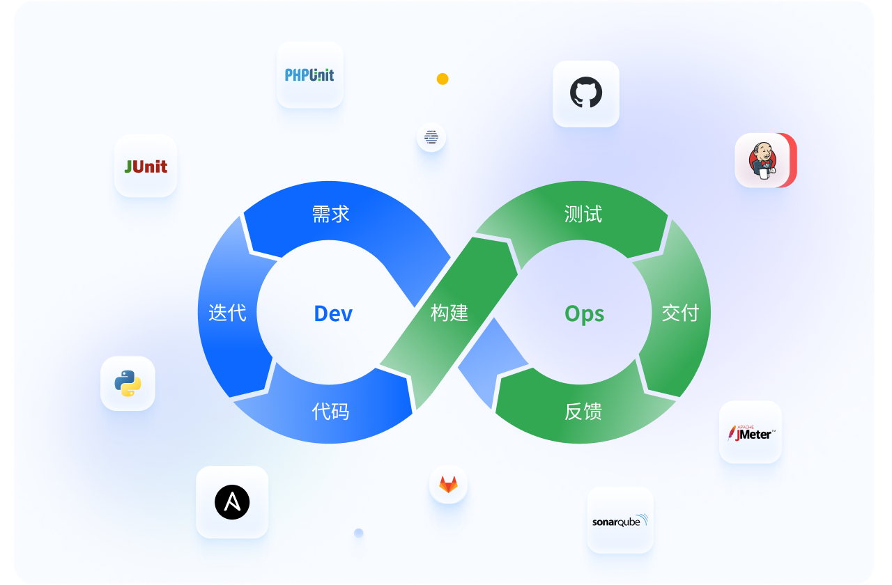 与主流协作与研发工具集成,提供可视化交付流水线管理,深度整合研发工具链,支持接入企业自建工具。